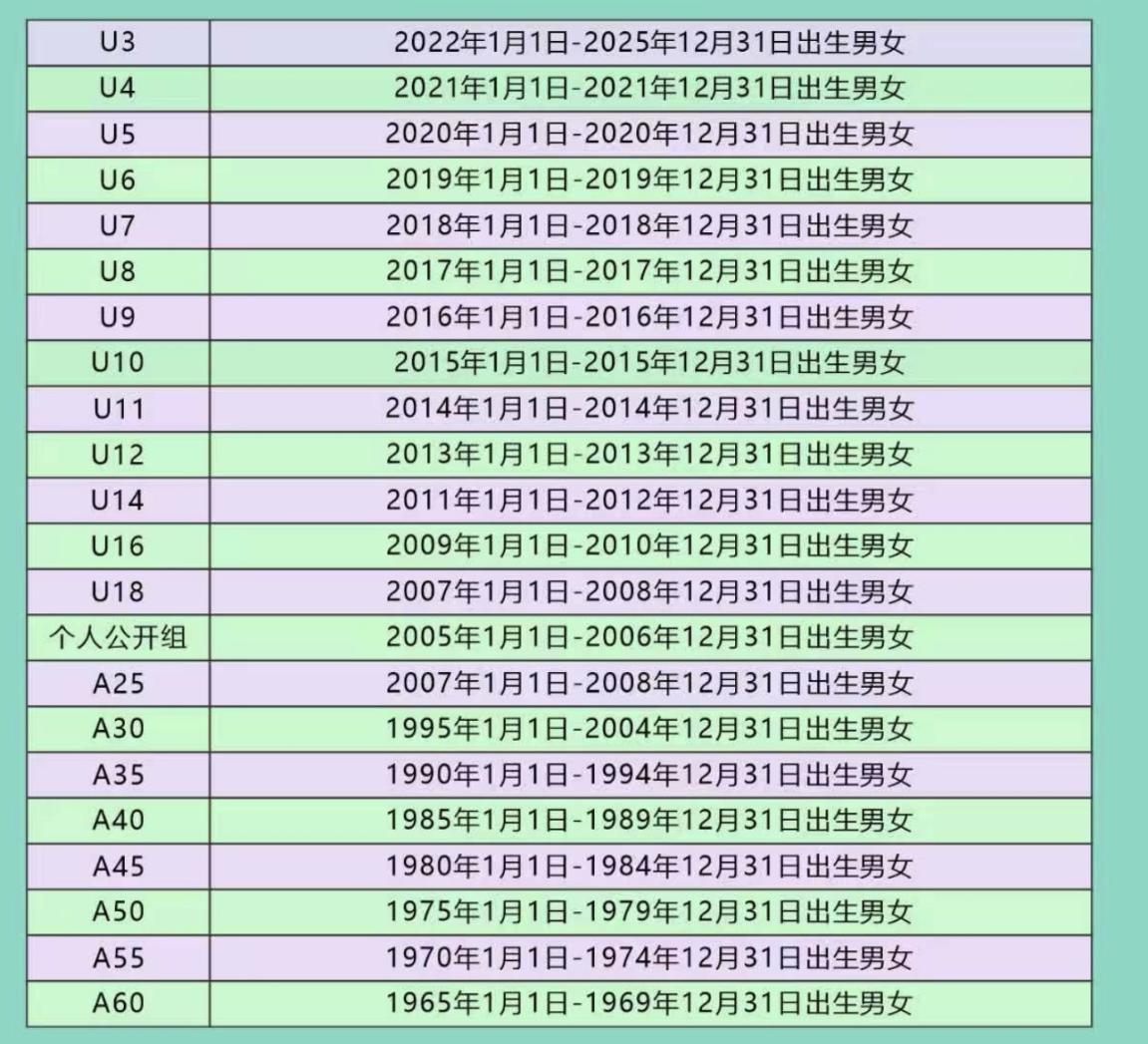 注:参赛选手年龄统一按照出生年份计算。