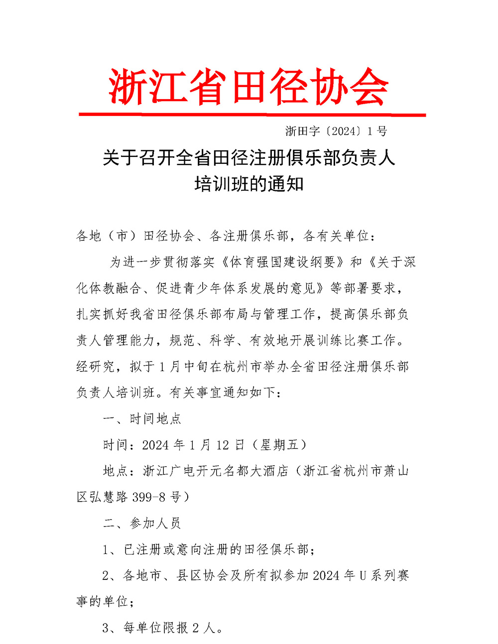 ・2024年浙江省田径协会赛事活动计划